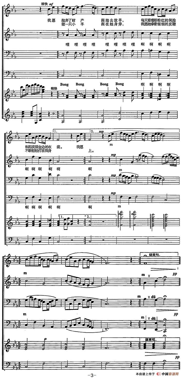 在那遥远的地方(男声四重唱、正谱)相关五线谱