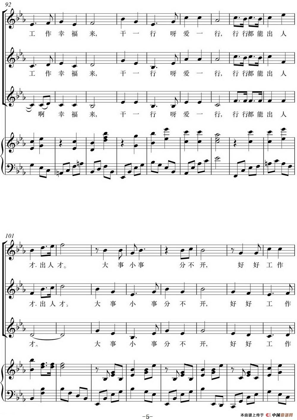 社会主义核心价值观少儿组歌:敬业歌(正谱)相关五线谱
