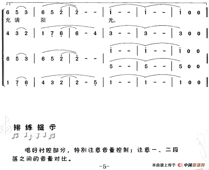 我们的生活充满阳光(冯晓阳编合唱版)相关五线谱