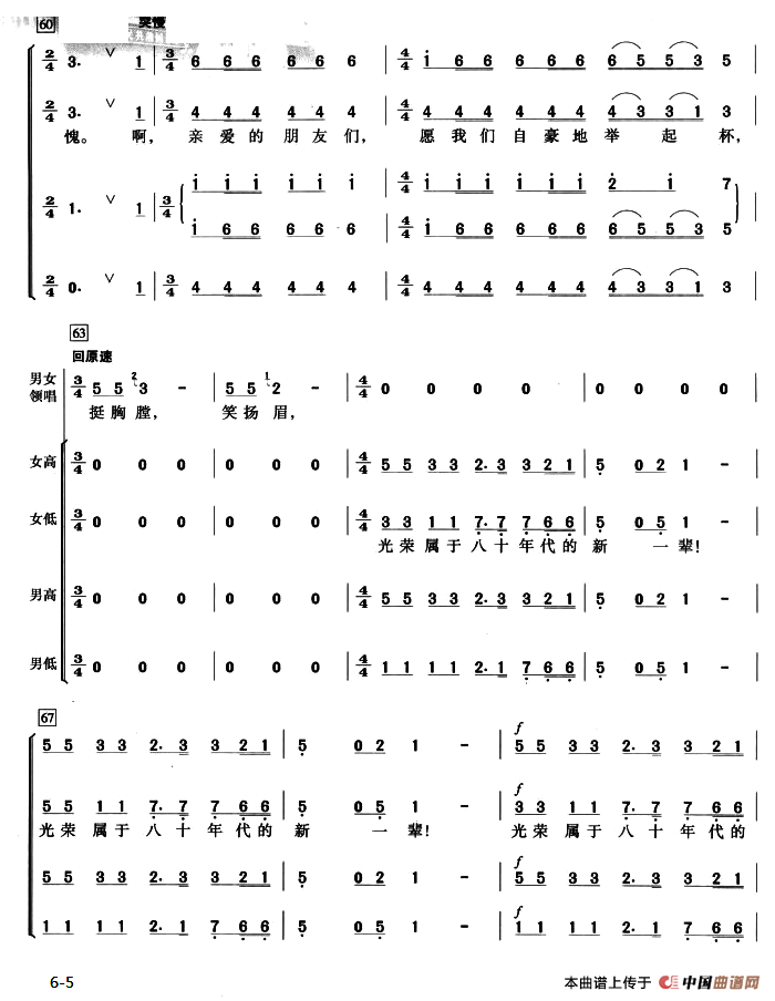 年轻的朋友来相会(翟建国编合唱版)相关五线谱