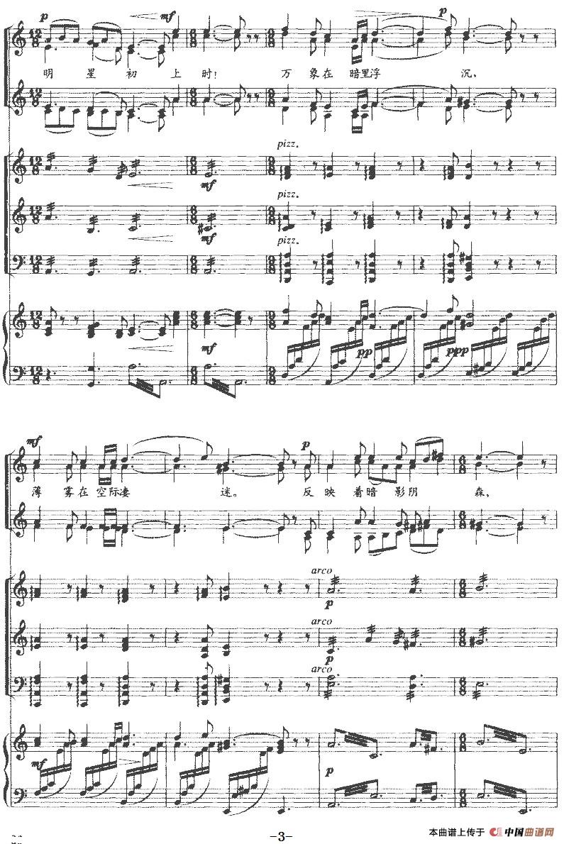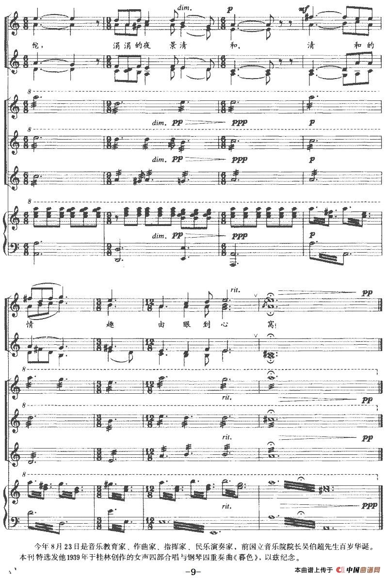 暮色(女声四部合唱、小提琴+大提琴+钢琴伴奏)相关五线谱