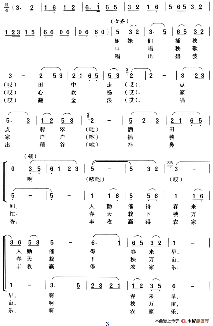 农夫歌(朝鲜族民歌、线简谱混排版)