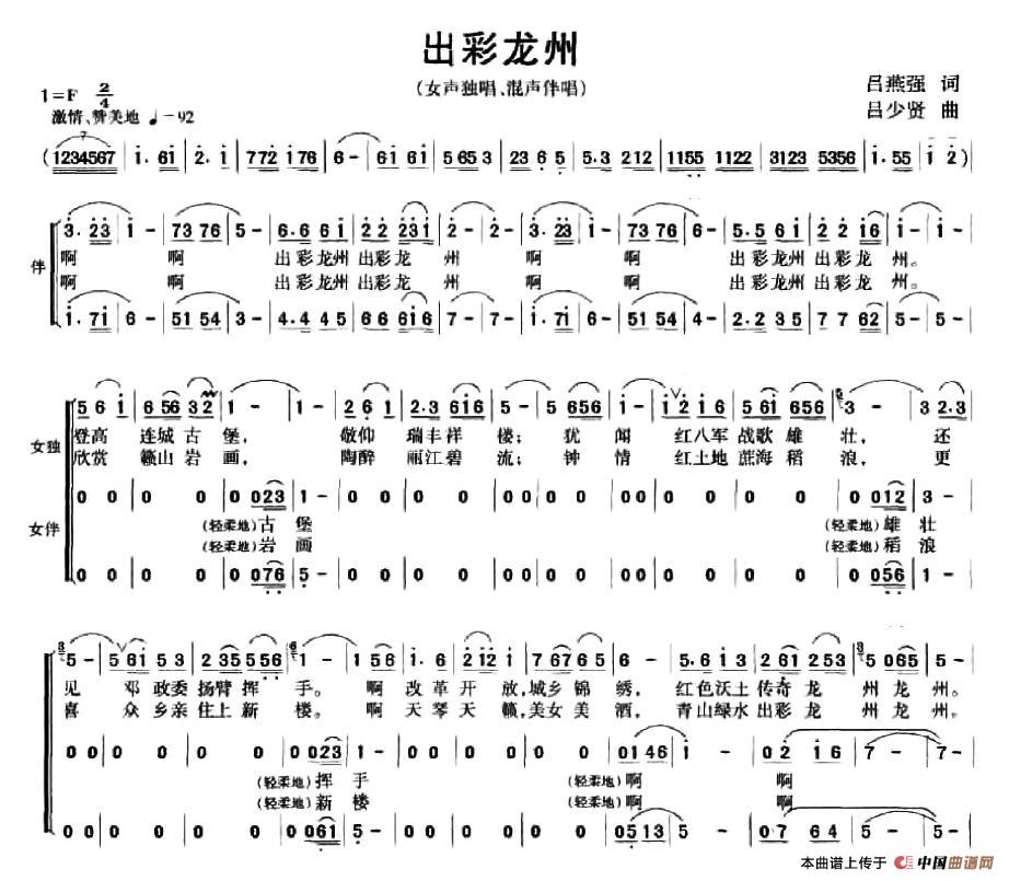 吕少贤曲谱推荐小伞下花山花(古笛词 吕少贤曲)老乐歌花山行花山夜雨牛角弯弯(韦吉龙 陈凤英词 吕少贤曲)充满希望的宁明华侨农场(广西宁明华侨农场场歌之二)故乡的月(张国良词 吕少贤曲)铜鼓·壮锦·红河水边城,我的故乡苗家拦路歌敲打幸福——壮族扁担歌邻里情(吕肇基词 吕少贤曲)心花之歌学校的小树林大雁天上飞漓江夜游心爱之歌花山迎客歌(吕少贤词 吕少贤曲)神秘的天坑群(潘琦词 吕少贤曲)