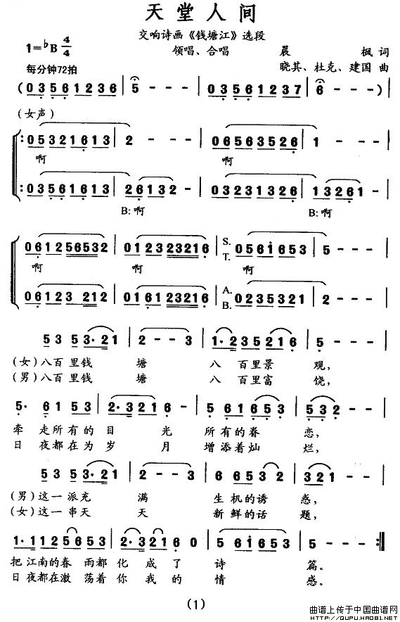 天堂人间相关五线谱