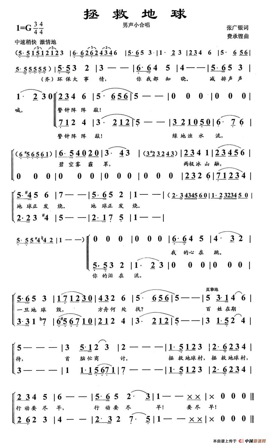 拯救地球(张广银词 费承铿曲)相关五线谱