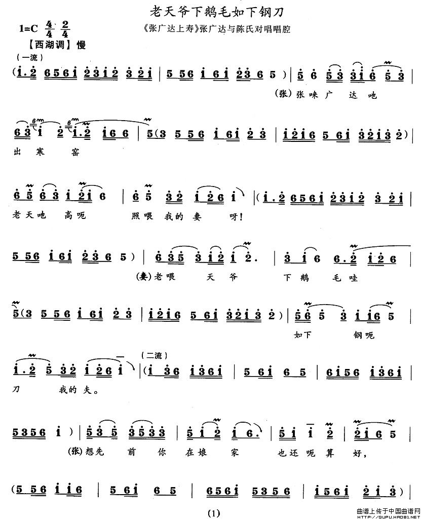 老天爷下鹅毛如下钢刀(《张广达上寿》张广达、陈氏唱段)相关五线谱