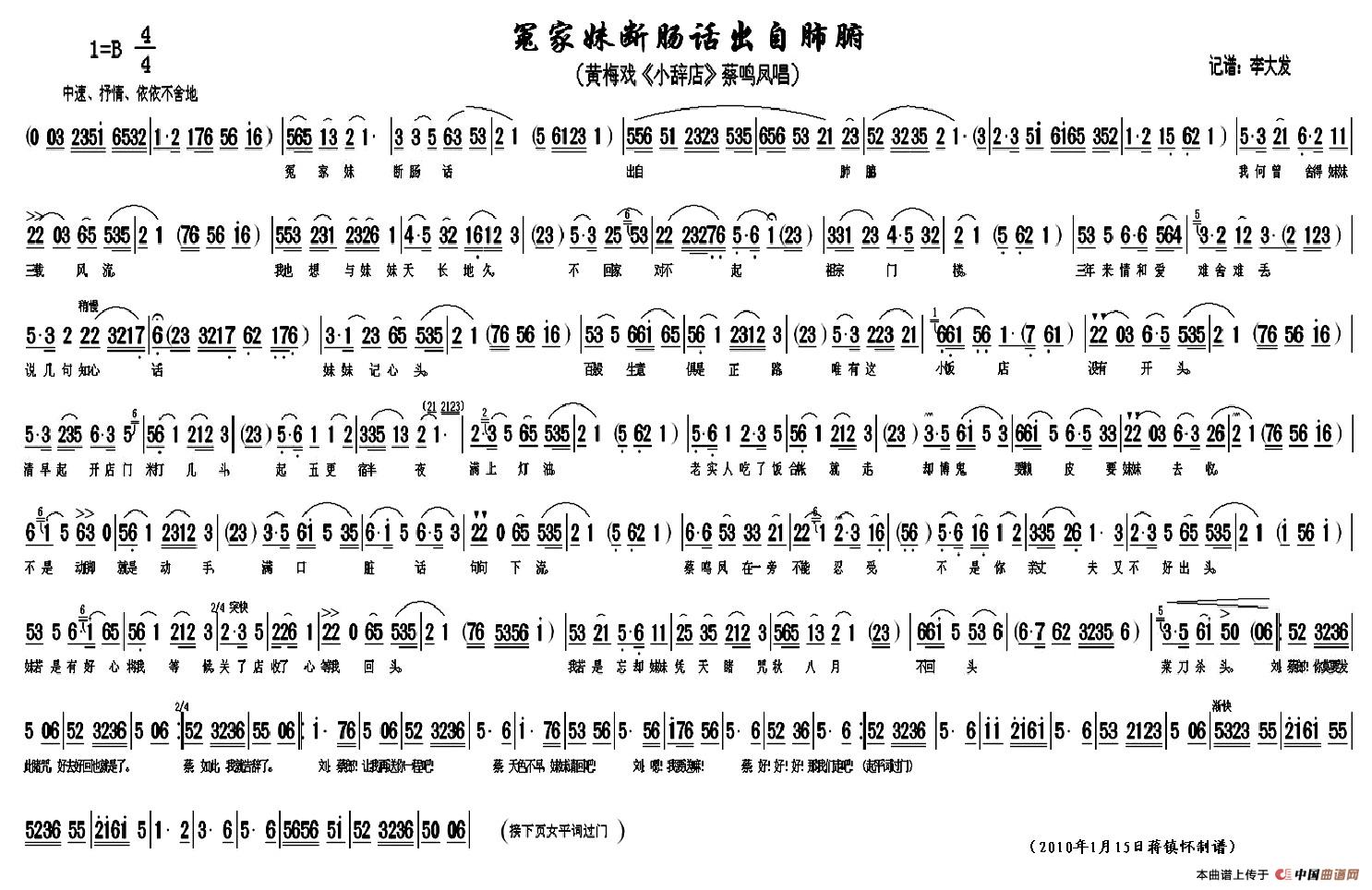 - 叙叙你我当初(黄梅戏《小辞店》选段)(李大发记谱版)