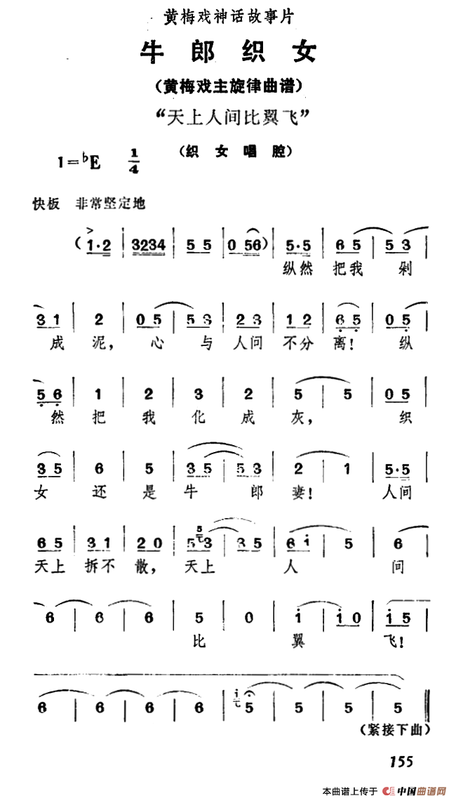 天上人间比翼飞(《牛郎织女》织女唱腔)相关五线谱