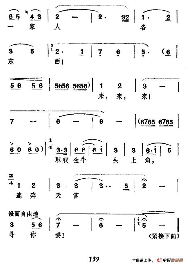 王母狠心拿织女(《牛郎织女》牛郎、牛化身唱腔)相关五线谱