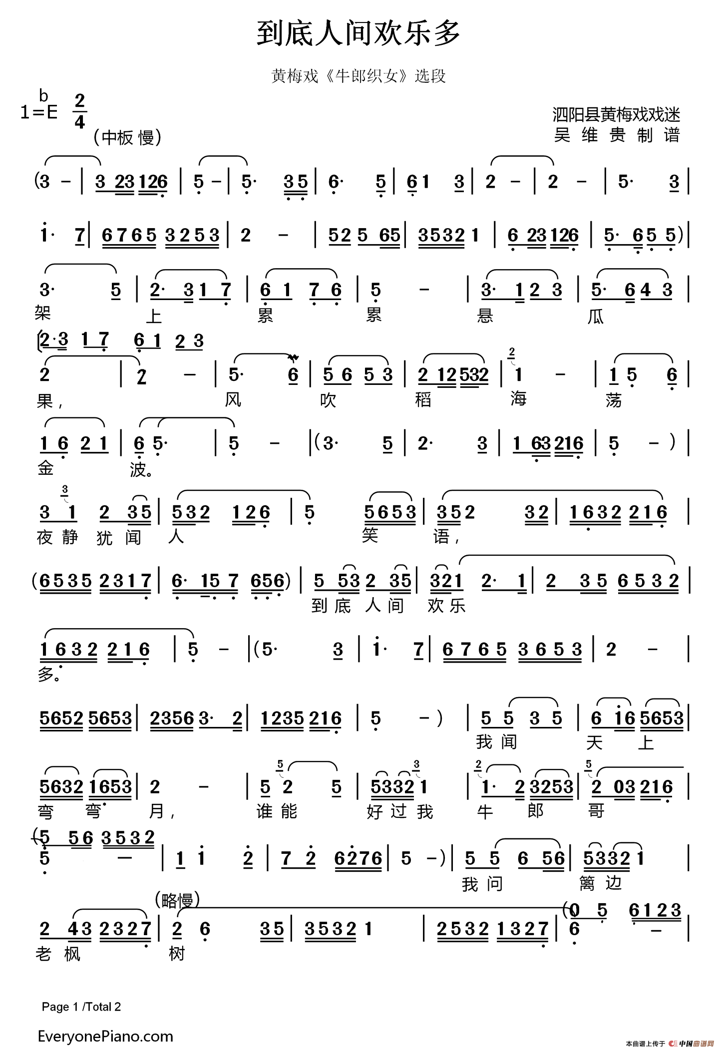 到底人间欢乐多(黄梅戏《牛郎织女》选段)(吴维贵制谱版)