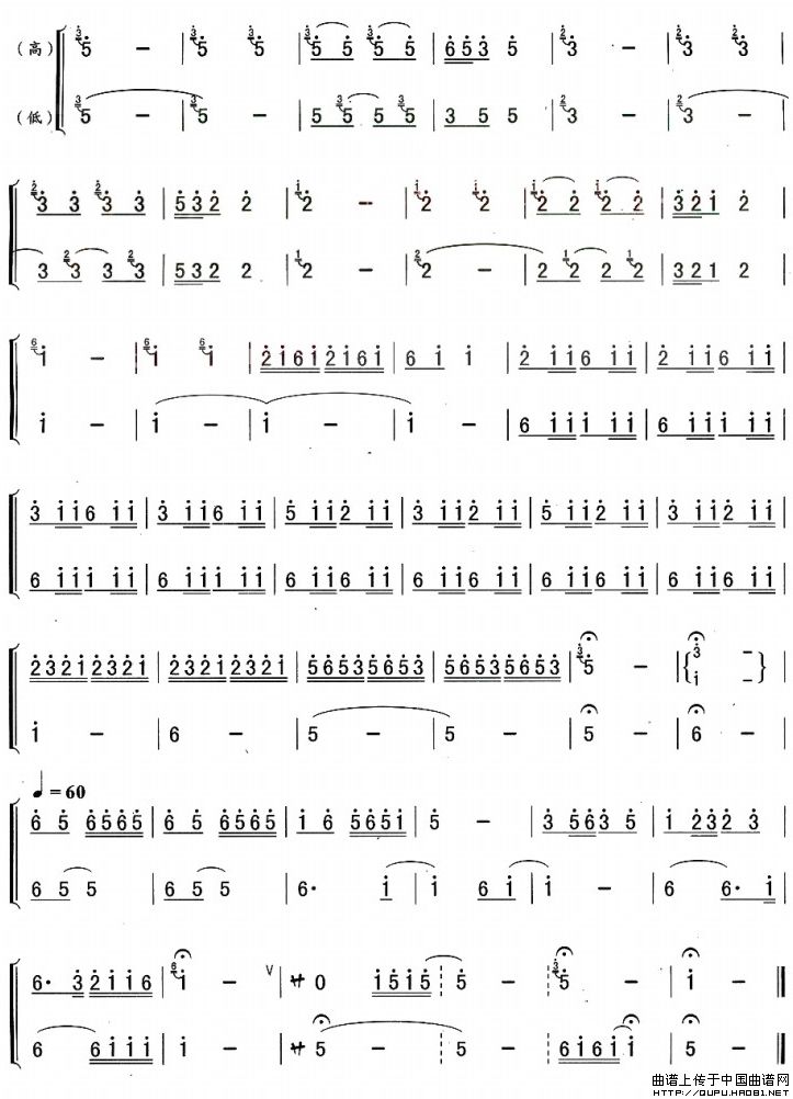 山楂树(葫芦丝二重奏、线简谱混排版)