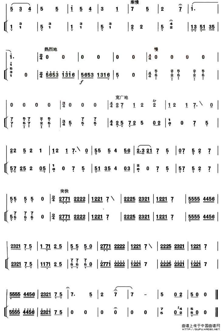 五线谱版二重唱:欢乐的敖包会