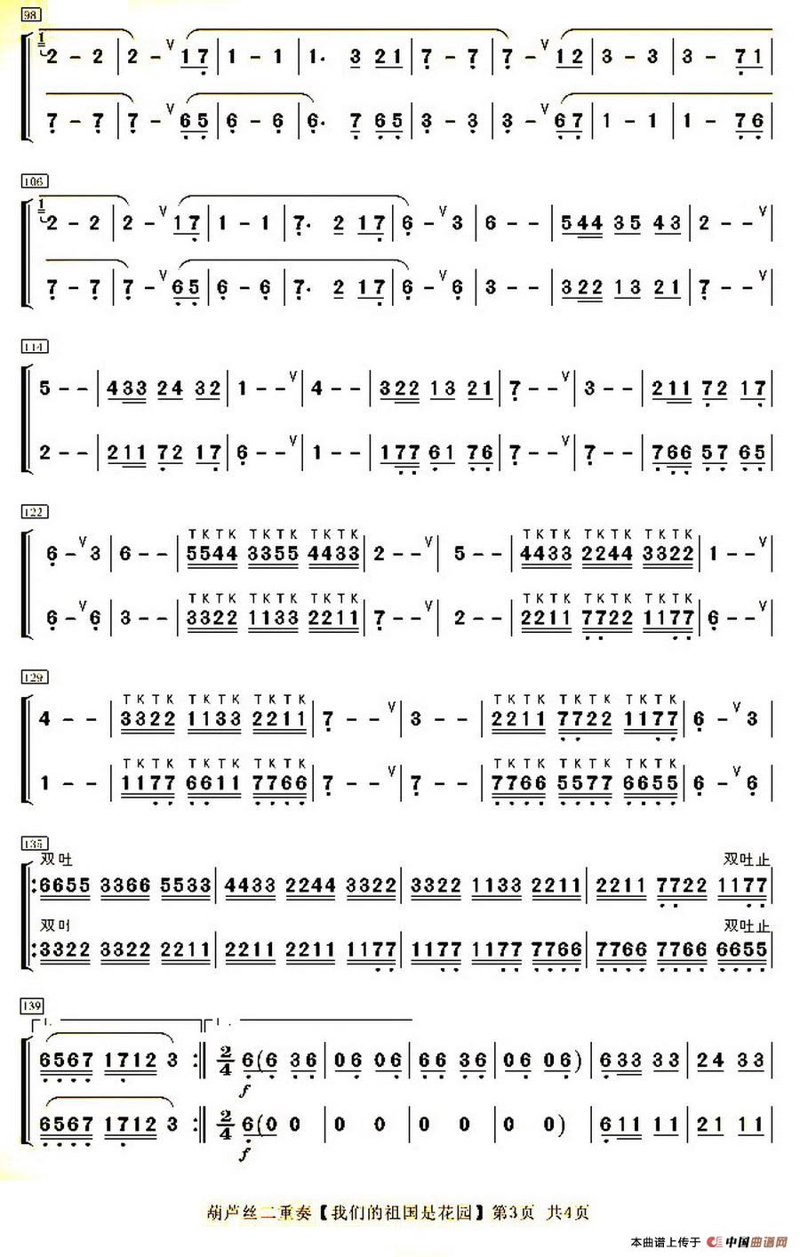 我们的祖国是花园相关五线谱