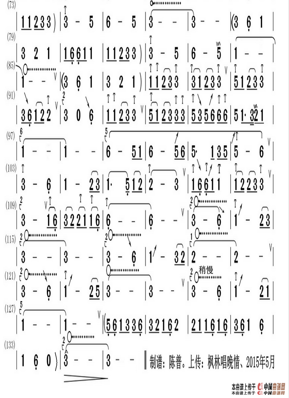 月光下的凤尾竹(卢雄山编改版)相关五线谱