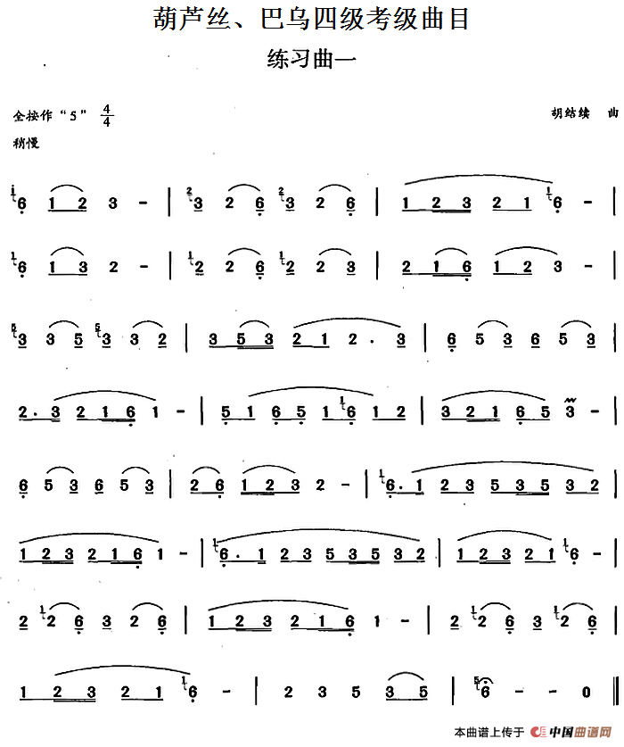 葫芦丝、巴乌四级考级曲目:练习曲(1——4)