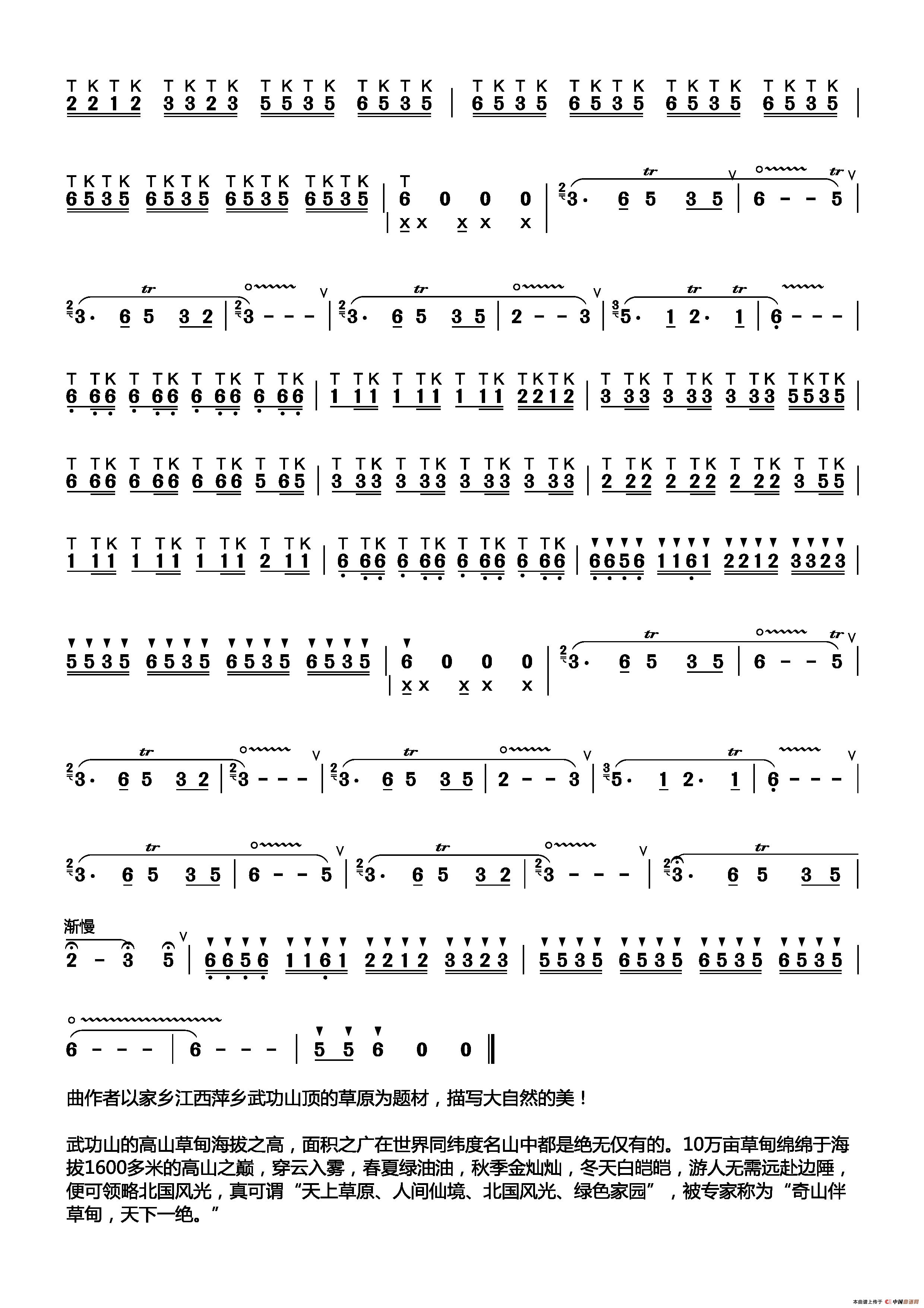 武功山顶草原美(洛河人家制谱版)相关五线谱