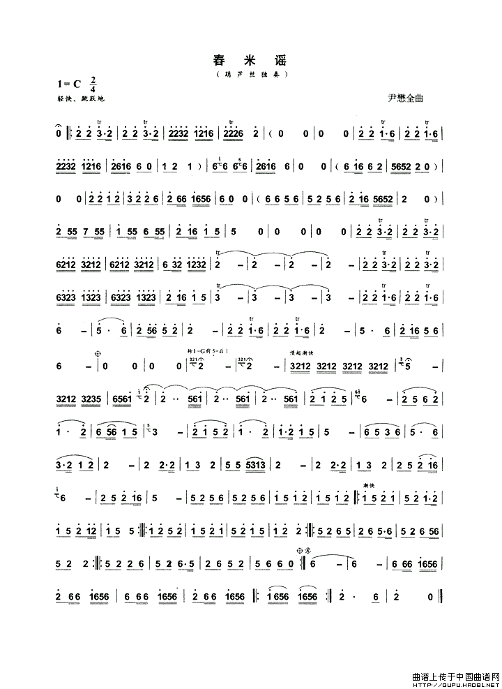 舂米谣相关五线谱