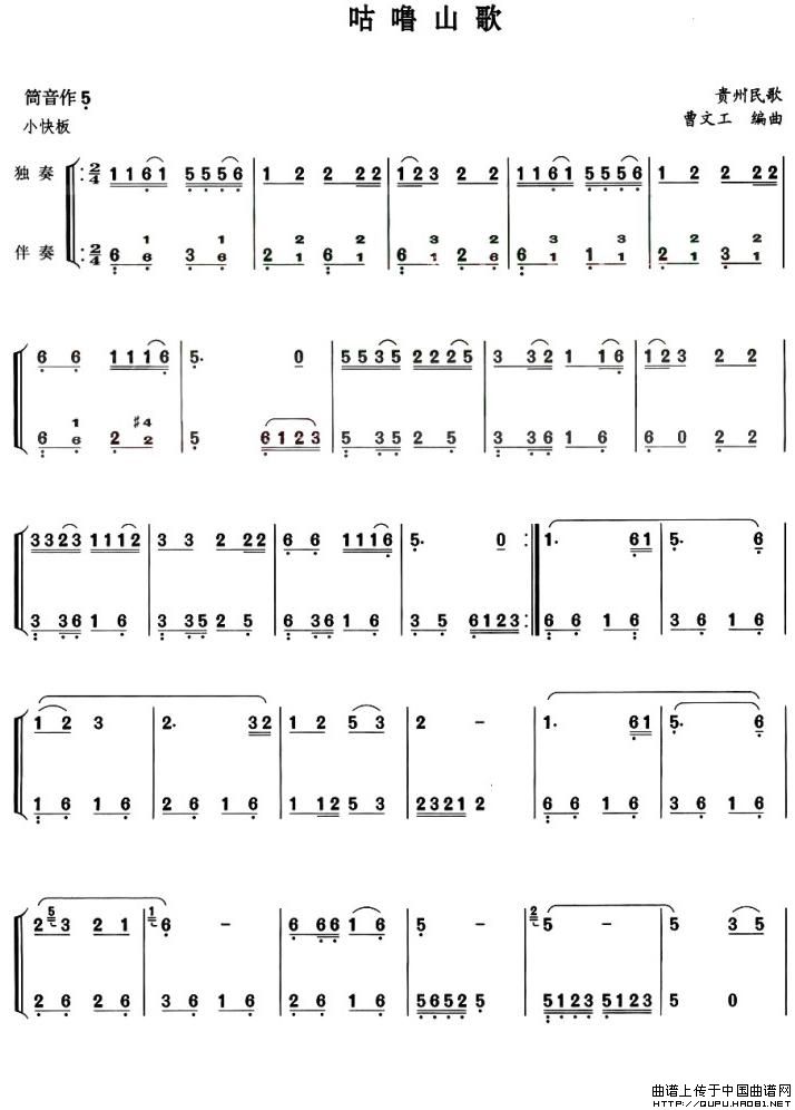 咕噜山歌相关五线谱