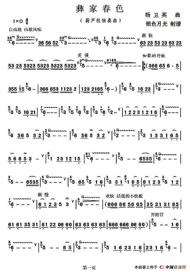 彝家春色相关五线谱