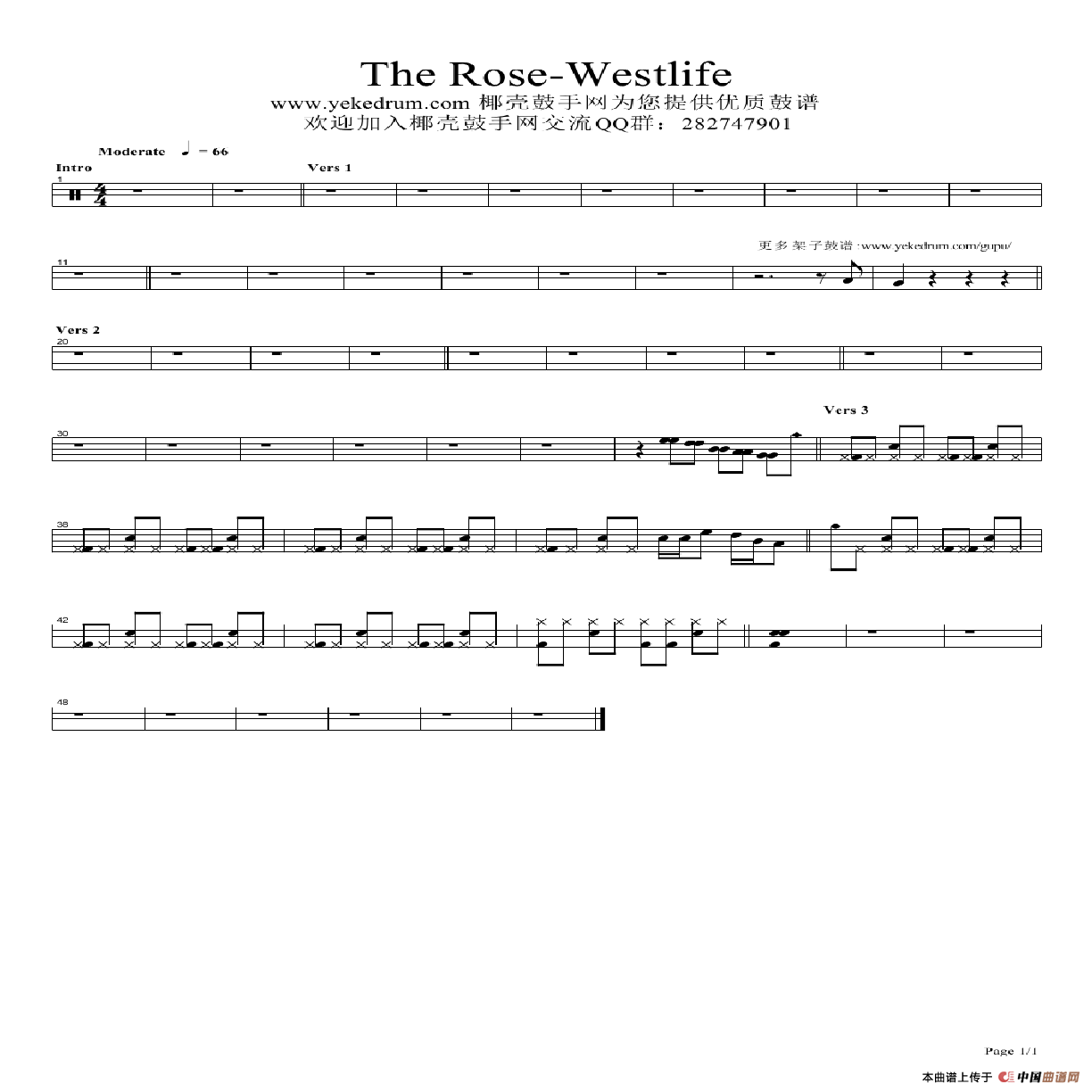 The Rose(架子鼓谱)相关五线谱