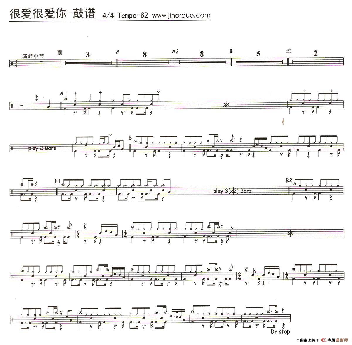 很爱很爱你(架子鼓谱)相关五线谱