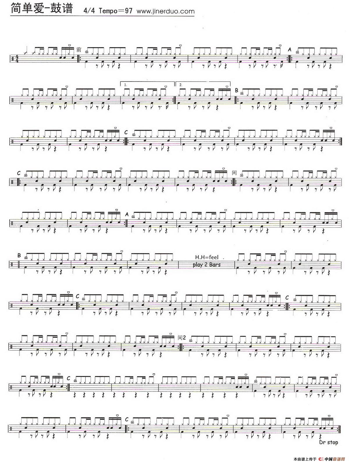 简单爱(架子鼓谱)