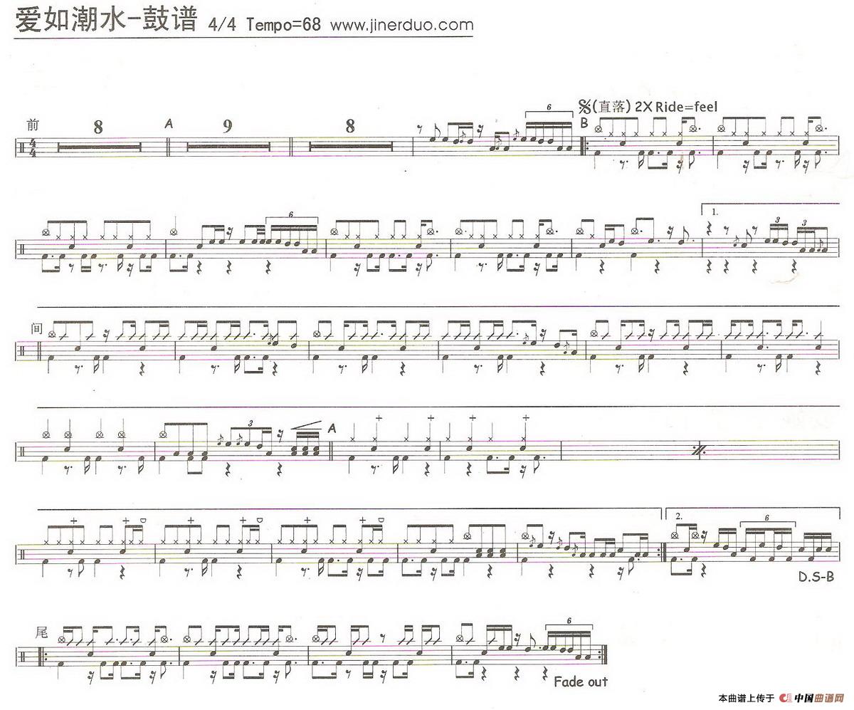爱如潮水(架子鼓谱)相关五线谱