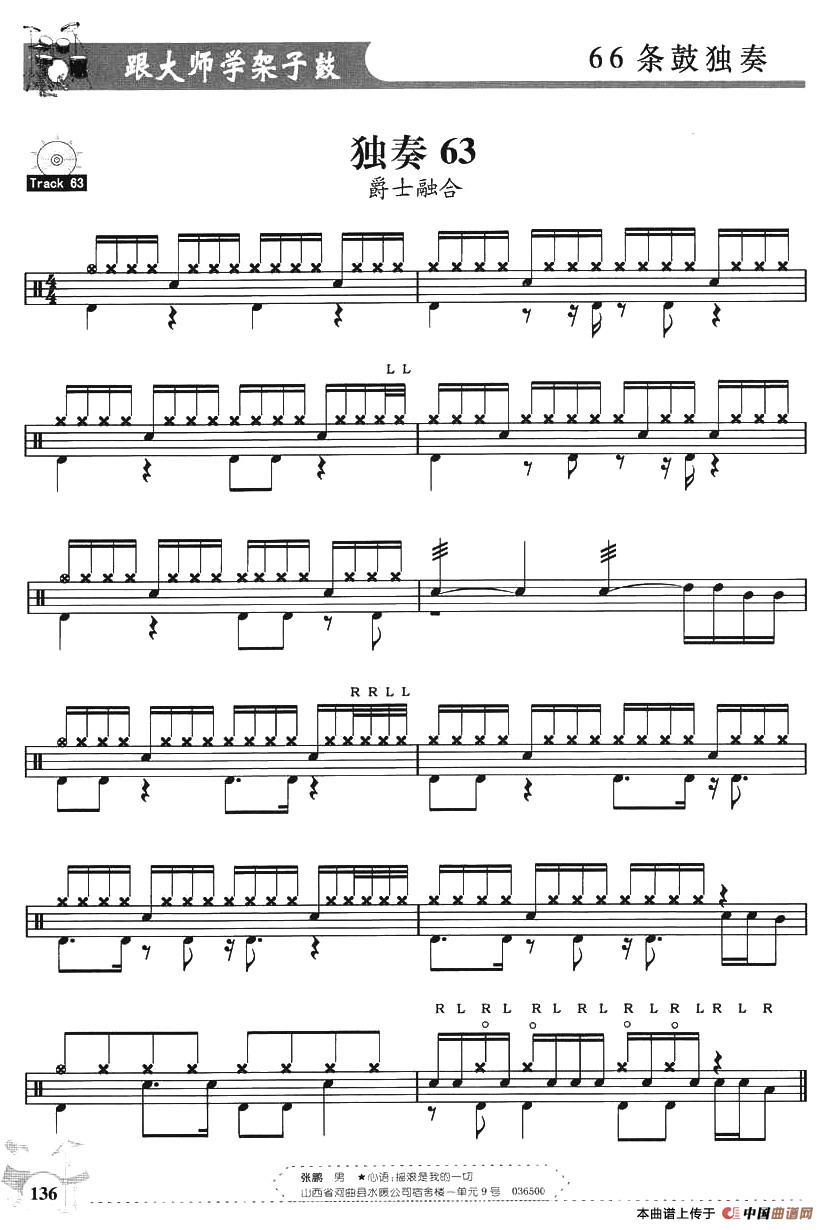 架子鼓独奏练习谱66条(61—66)相关五线谱