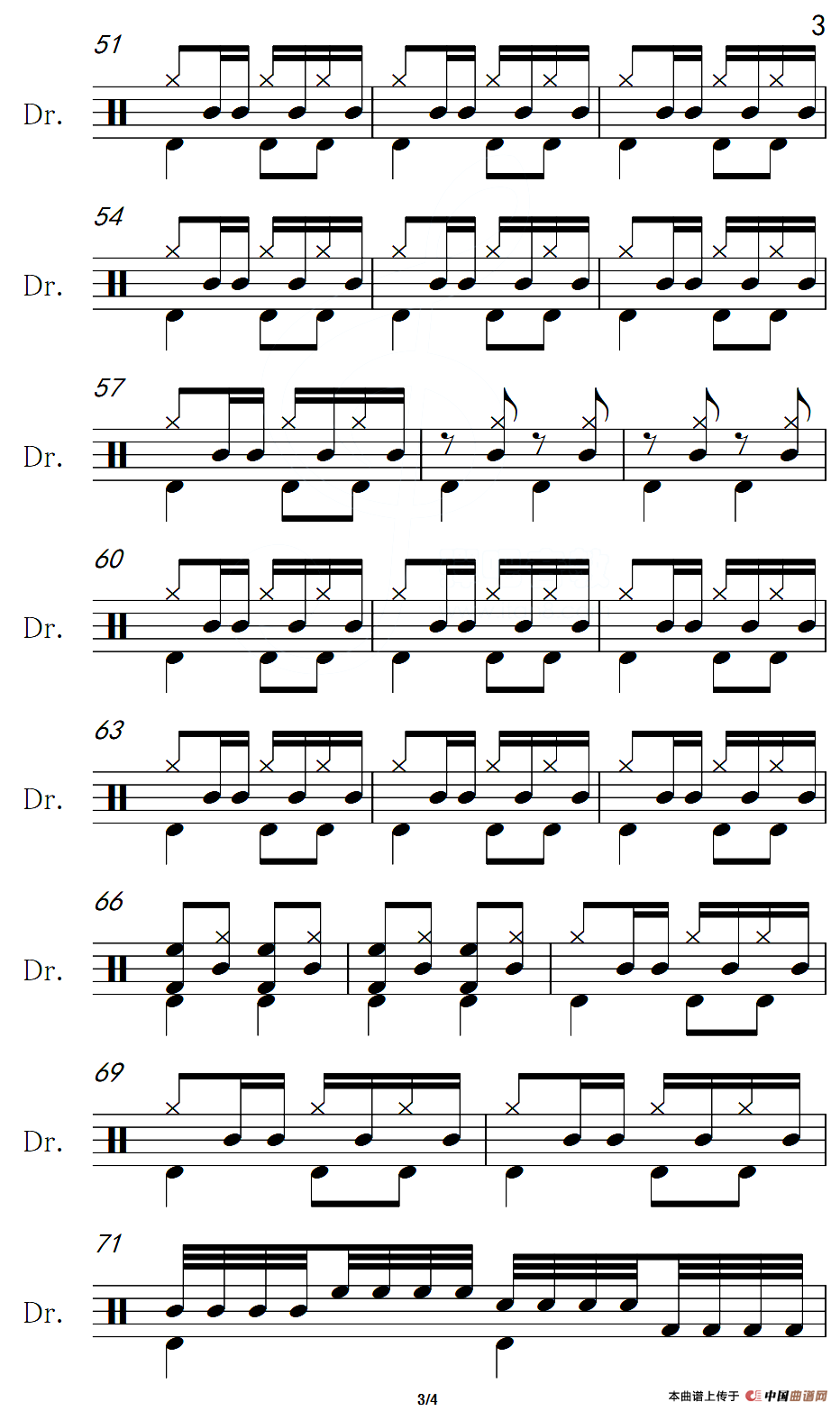 没有丑女人(架子鼓谱)