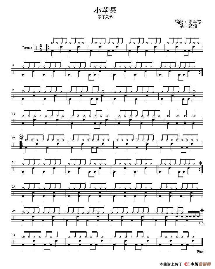小苹果(架子鼓谱、陈军禄编配版)相关五线谱