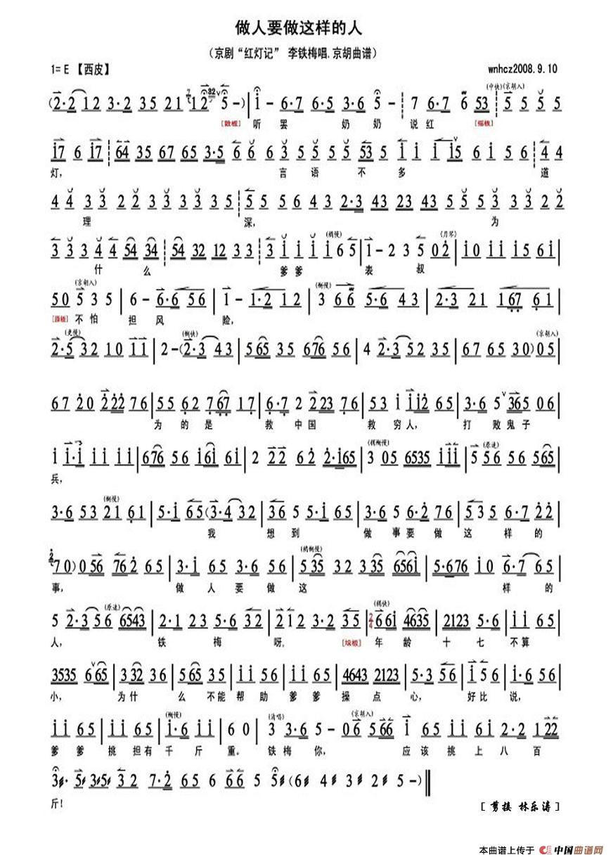 做人要做这样的人(《红灯记》李铁梅唱段、琴谱)相关五线谱