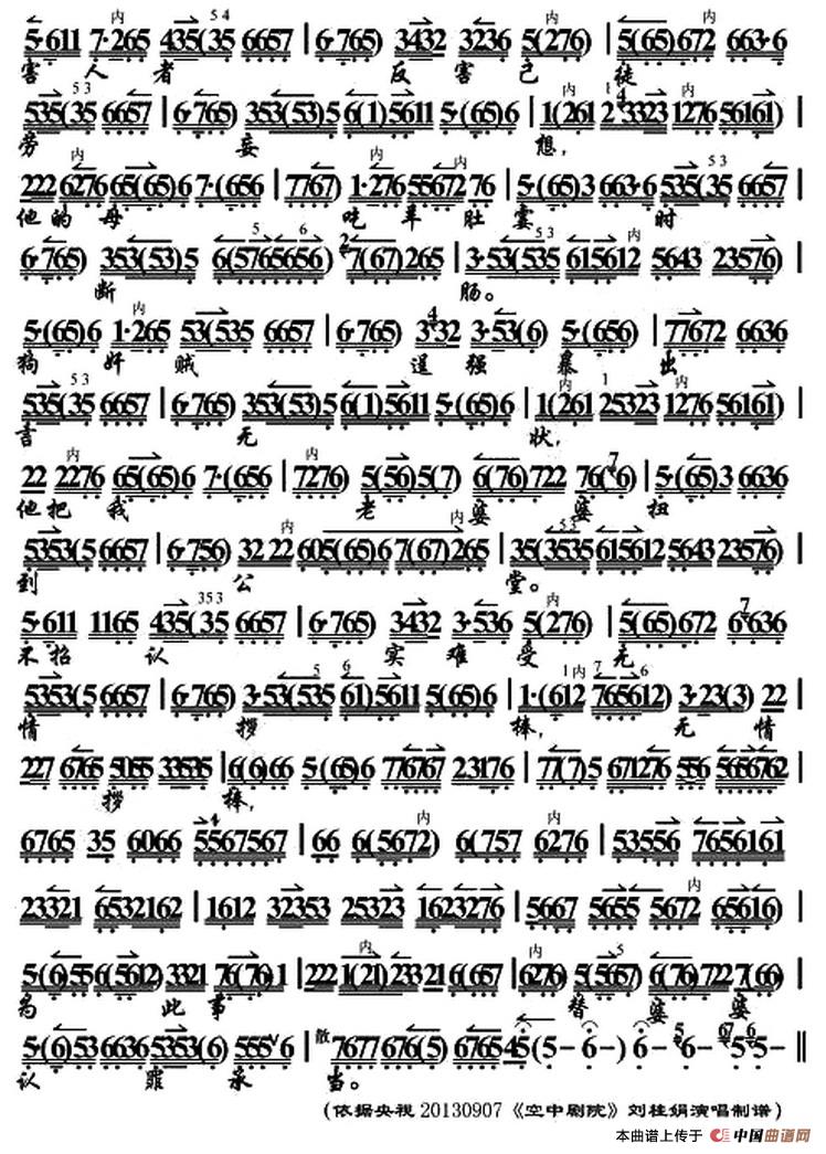 没来由遭刑宪受此大难(《六月雪》选段、刘桂娟演唱版、琴谱)