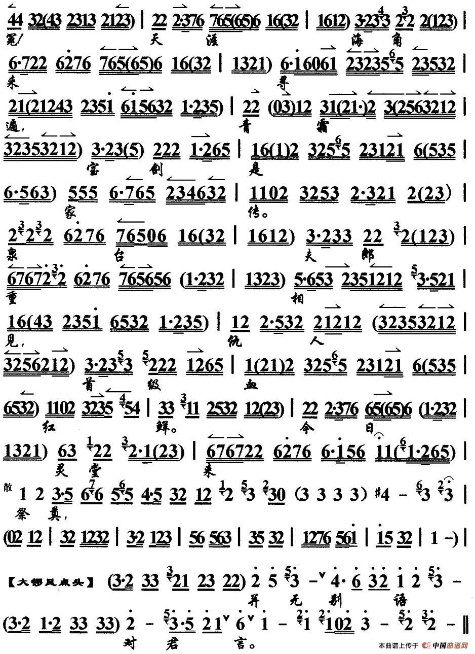 青霜剑报冤仇贼把命丧(《青霜剑》选段、京胡伴奏谱)