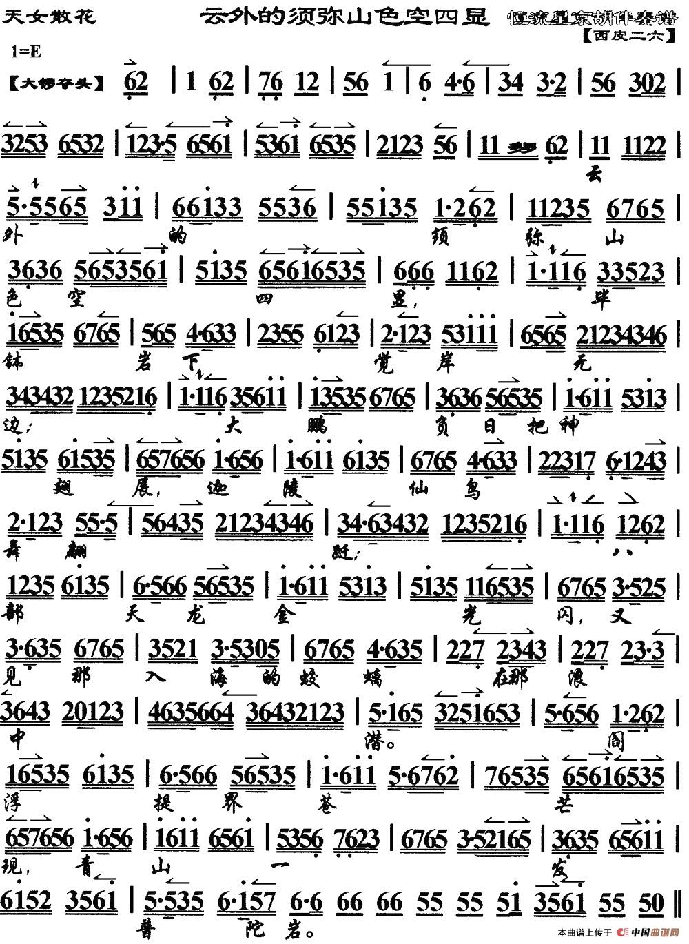 云外的须弥山色空四显(《天女散花》选段、琴谱)相关五线谱