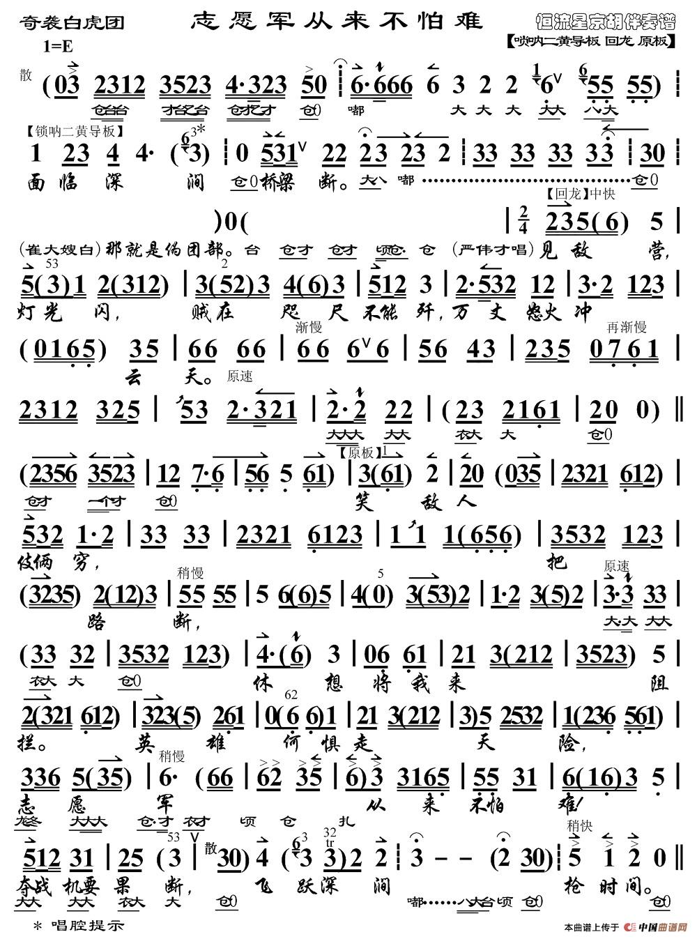 志愿军从来不怕难(《奇袭白虎团》严伟才唱段、琴谱)相关五线谱