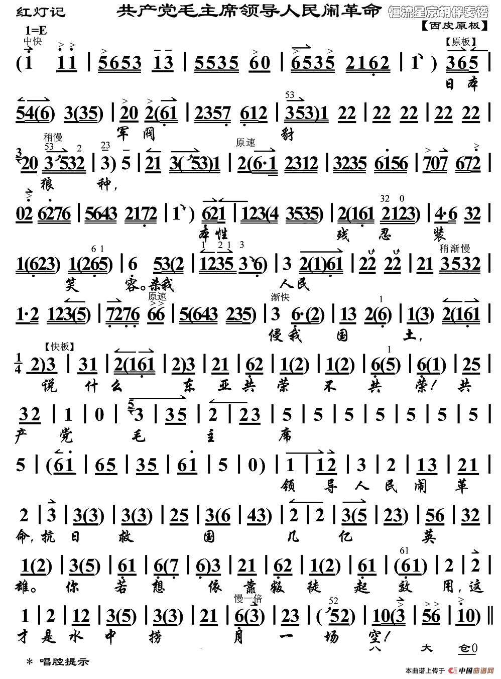 共产党毛主席领导人民闹革命(《红灯记》选段、琴谱)相关五线谱