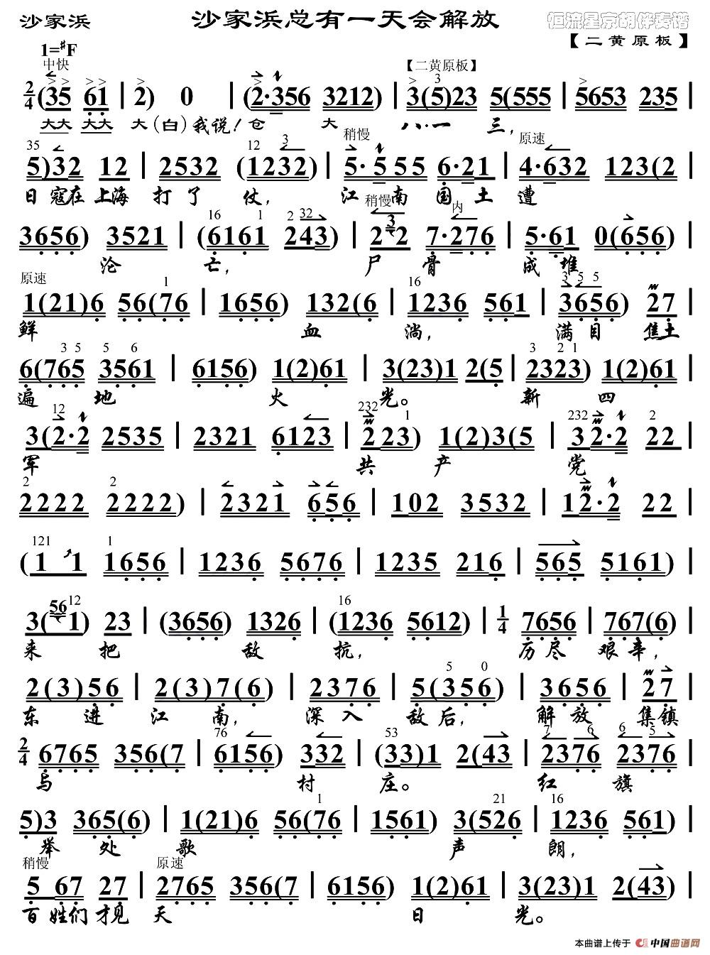 沙家浜总有一天会解放(《沙家浜》沙奶奶唱段、琴谱)
