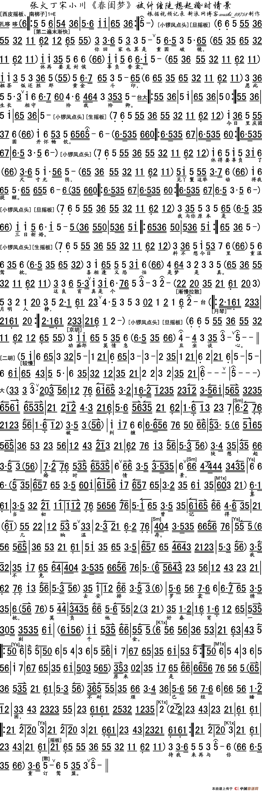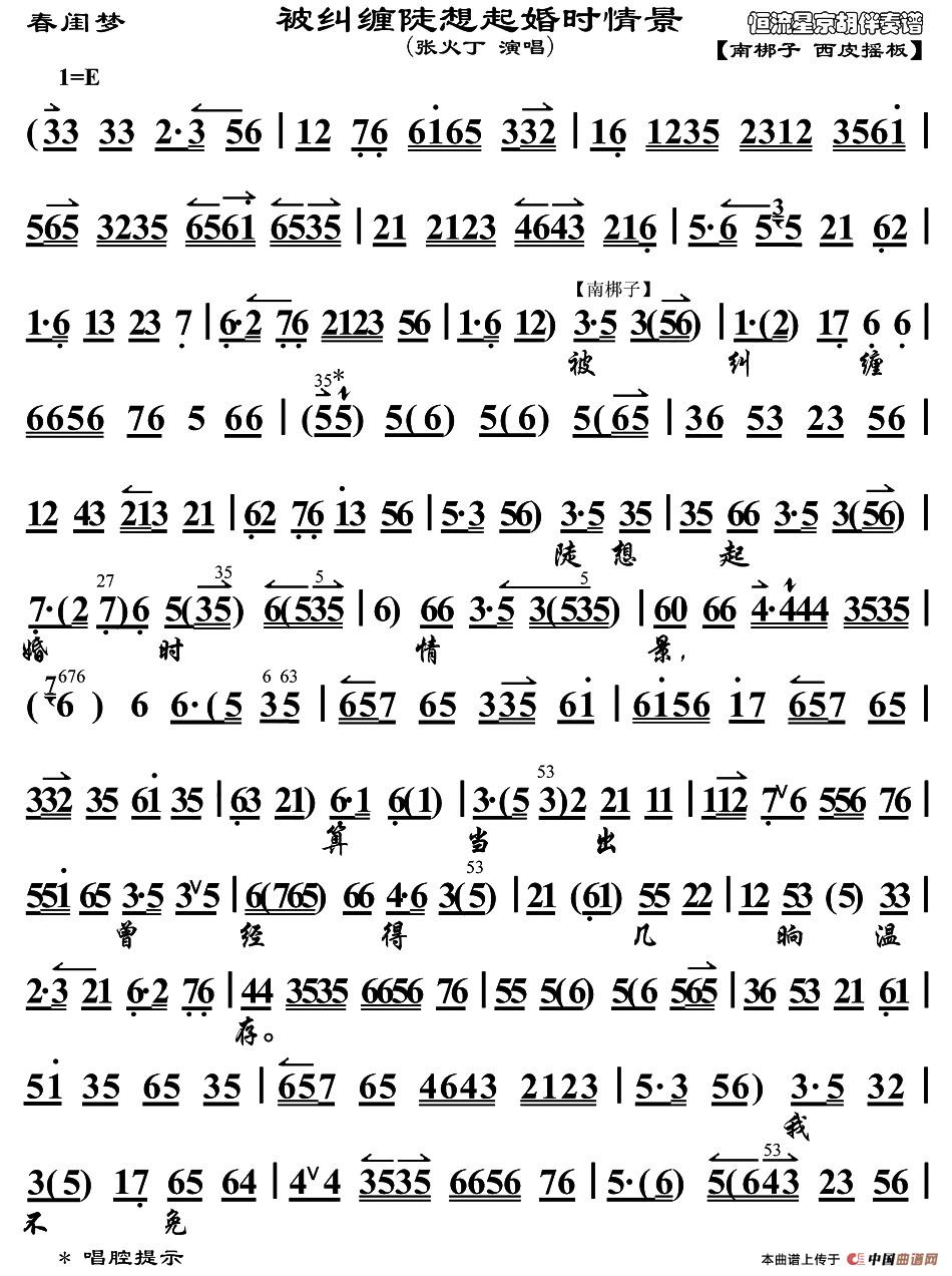被纠缠陡想起婚时情景(《春闺梦》选段、琴谱)相关五线谱