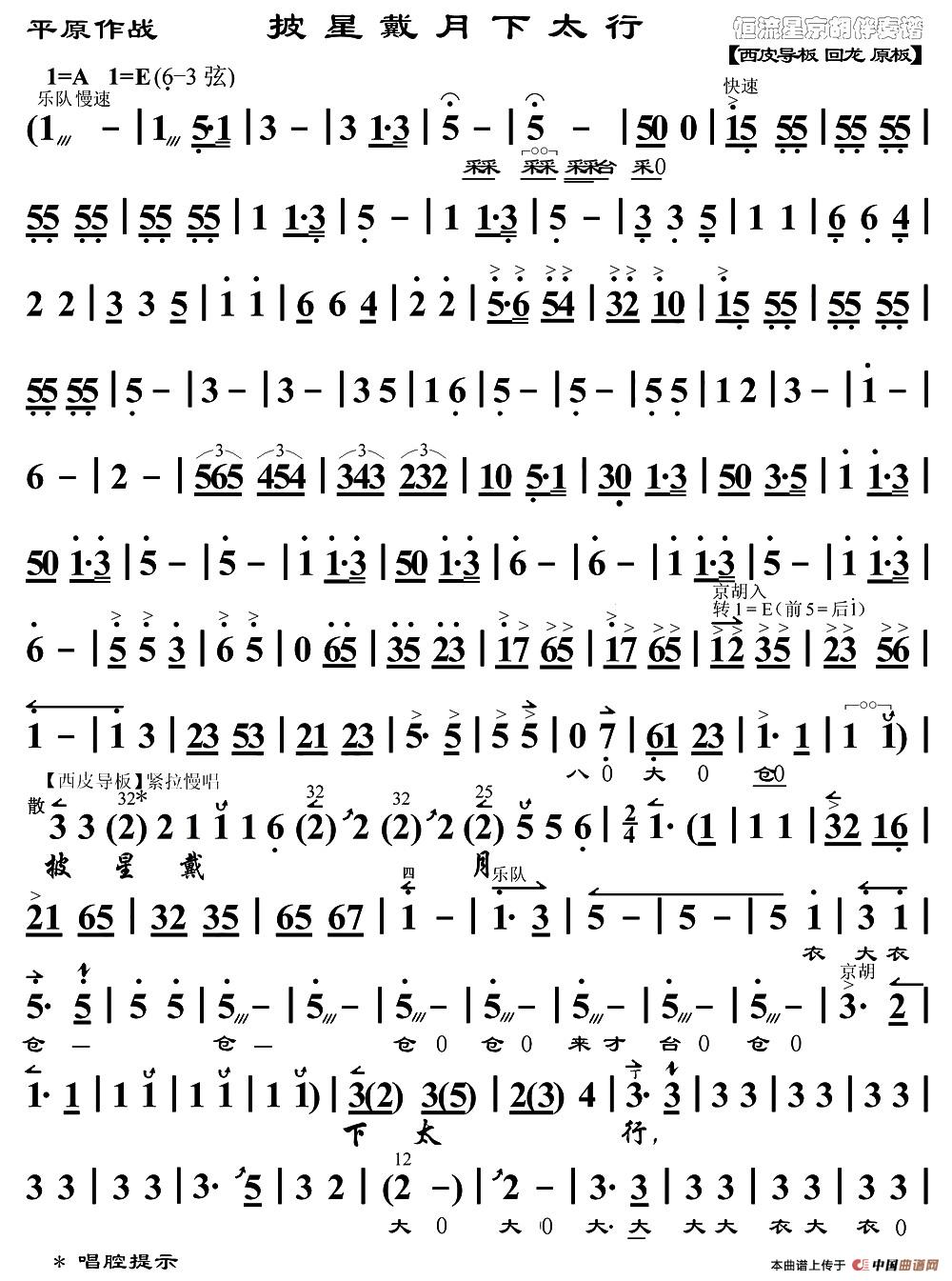 披星戴月下太行(《平原作战》赵勇刚唱段、琴谱)相关五线谱