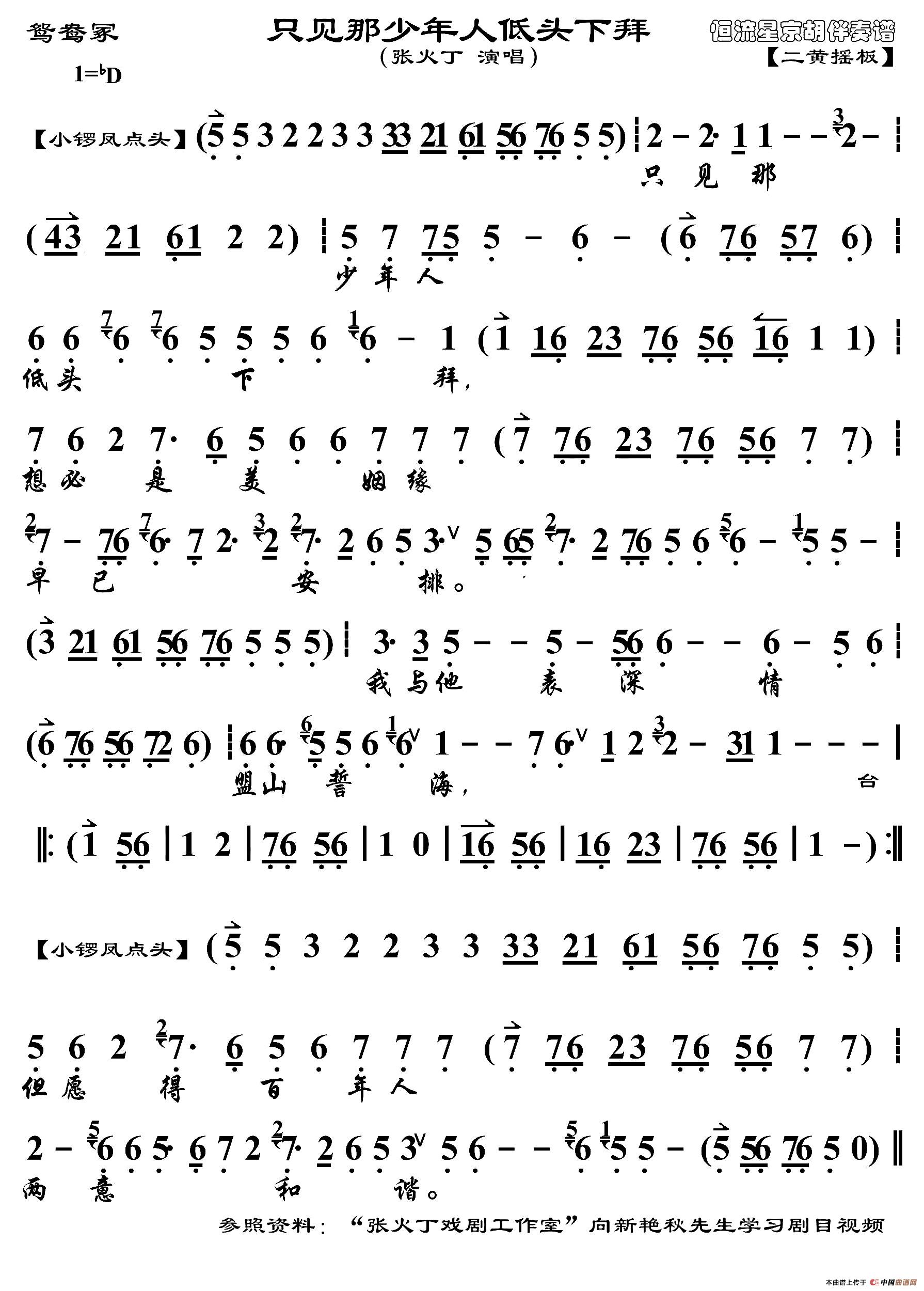 只见那少年人低头下拜(《鸳鸯冢》选段、琴谱)相关五线谱