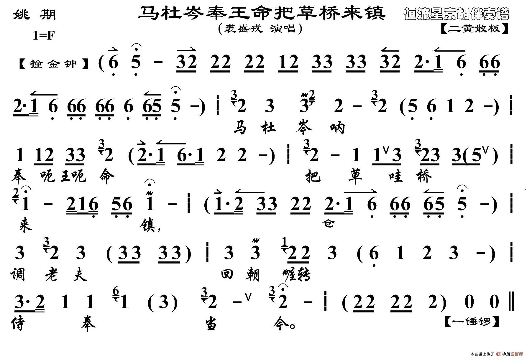马杜岑奉王命把草桥来镇(《姚期》选段、琴谱)