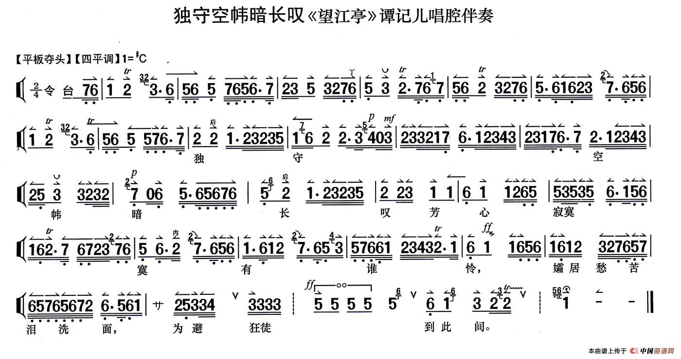 独守空帷暗长叹(《望江亭》谭记儿唱段、伴奏谱)相关五线谱