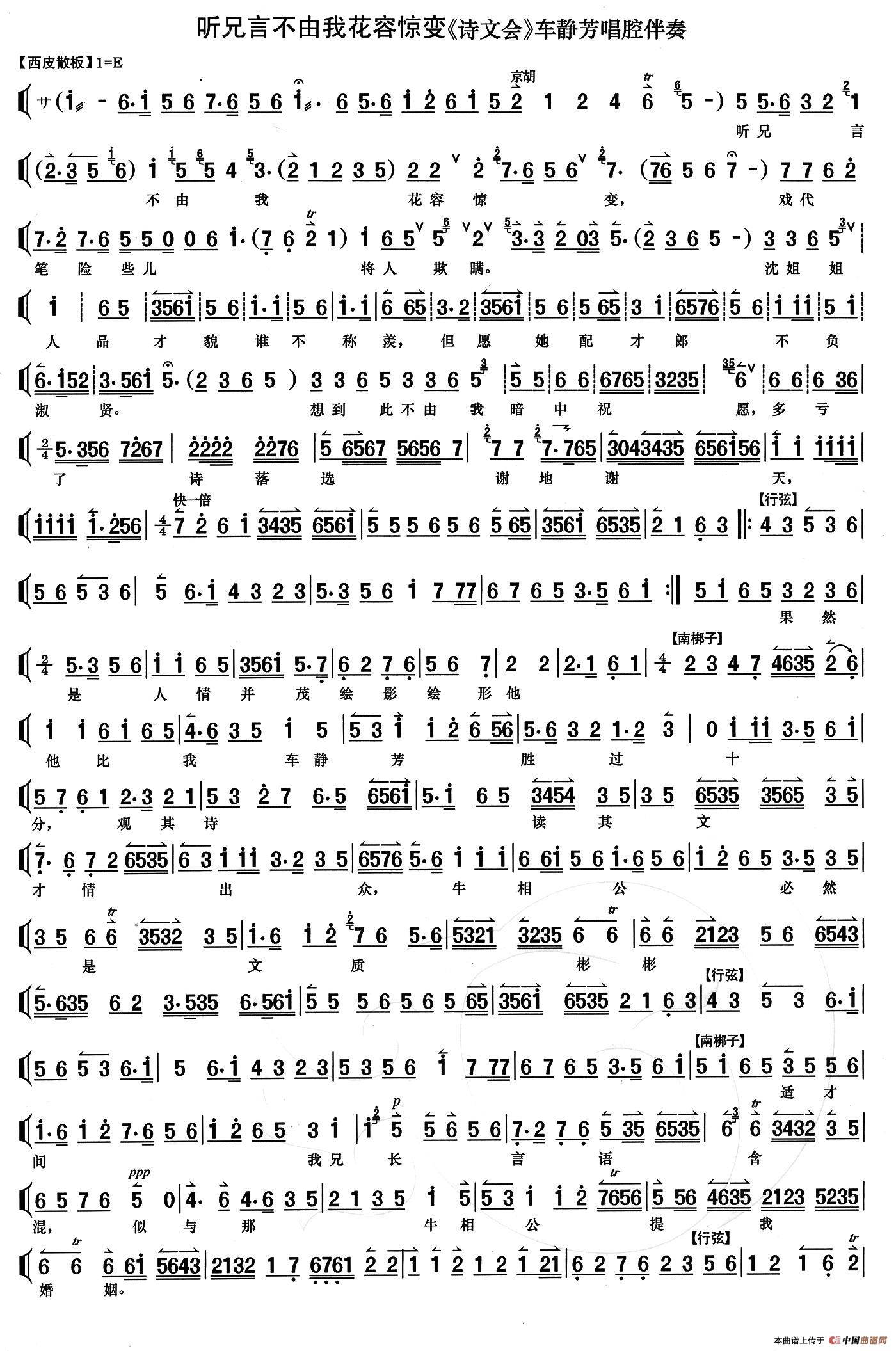 听兄言不由我花容惊变(《诗文会》车静芳唱段、伴奏谱)相关五线谱