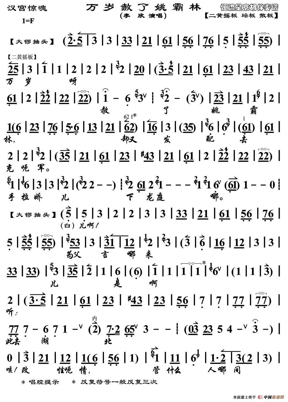万岁赦了姚霸林(《汉宫惊魂》选段)相关五线谱