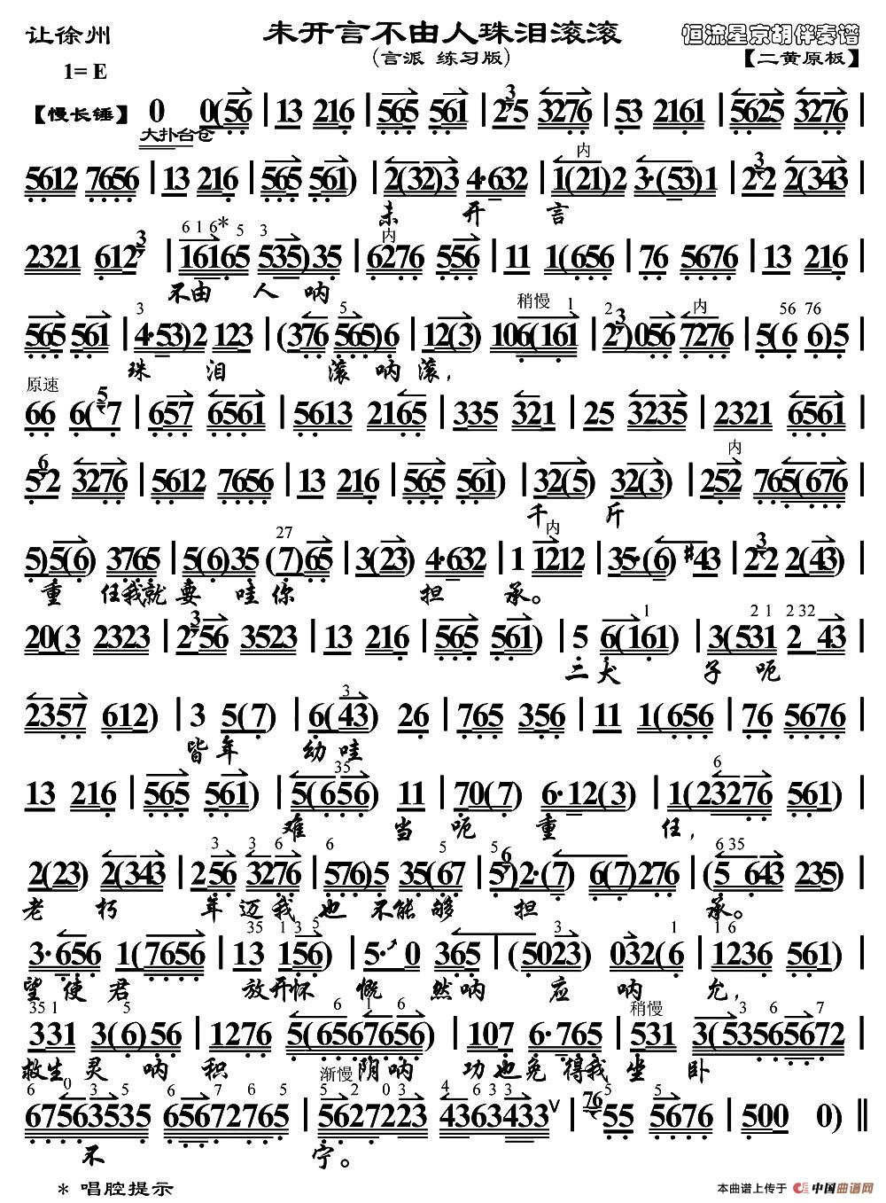 未开言不由人珠泪滚滚(《让徐州》选段、琴谱)