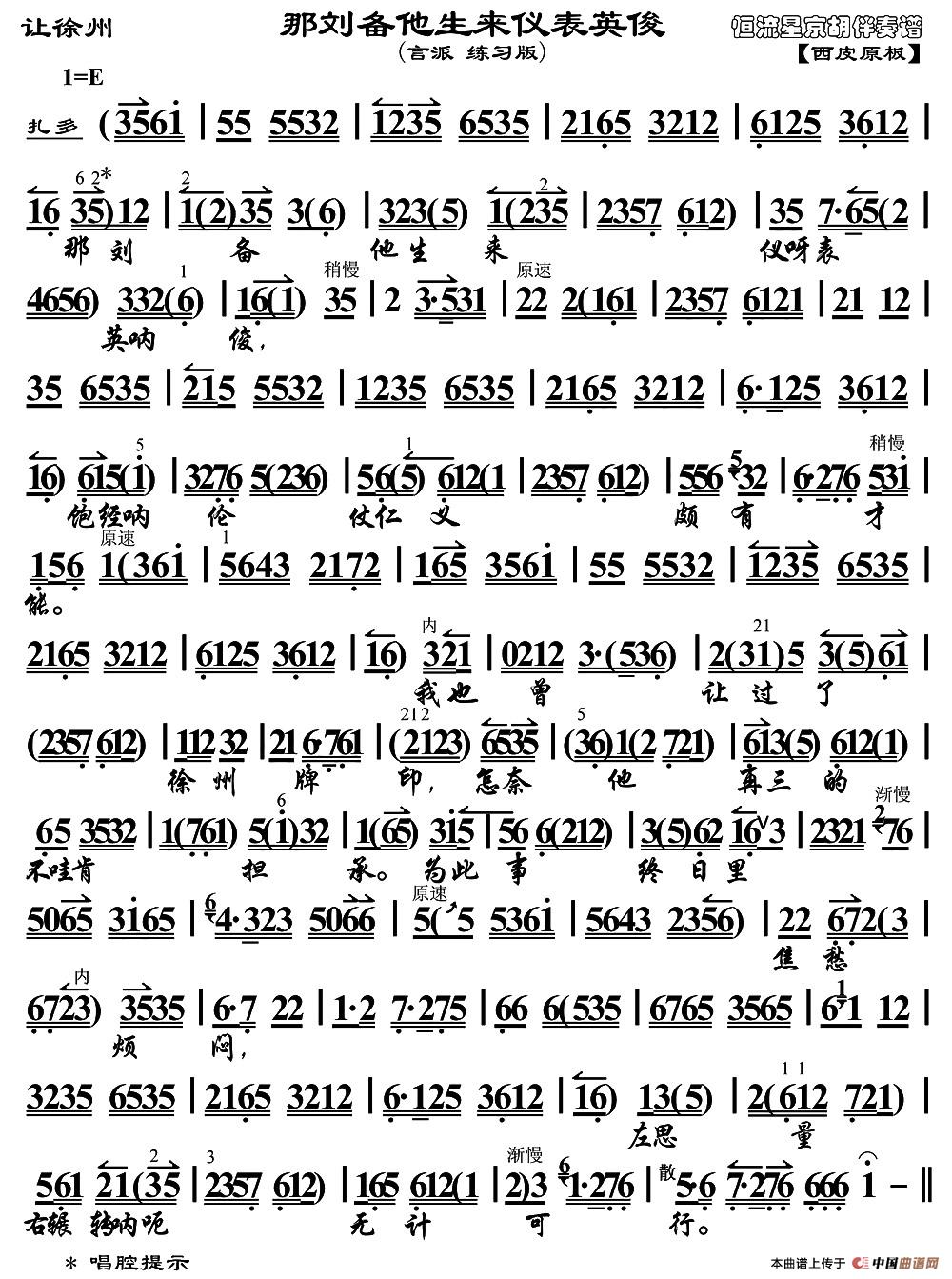 那刘备他生来仪表英俊(《让徐州》选段、琴谱、言派练习版)