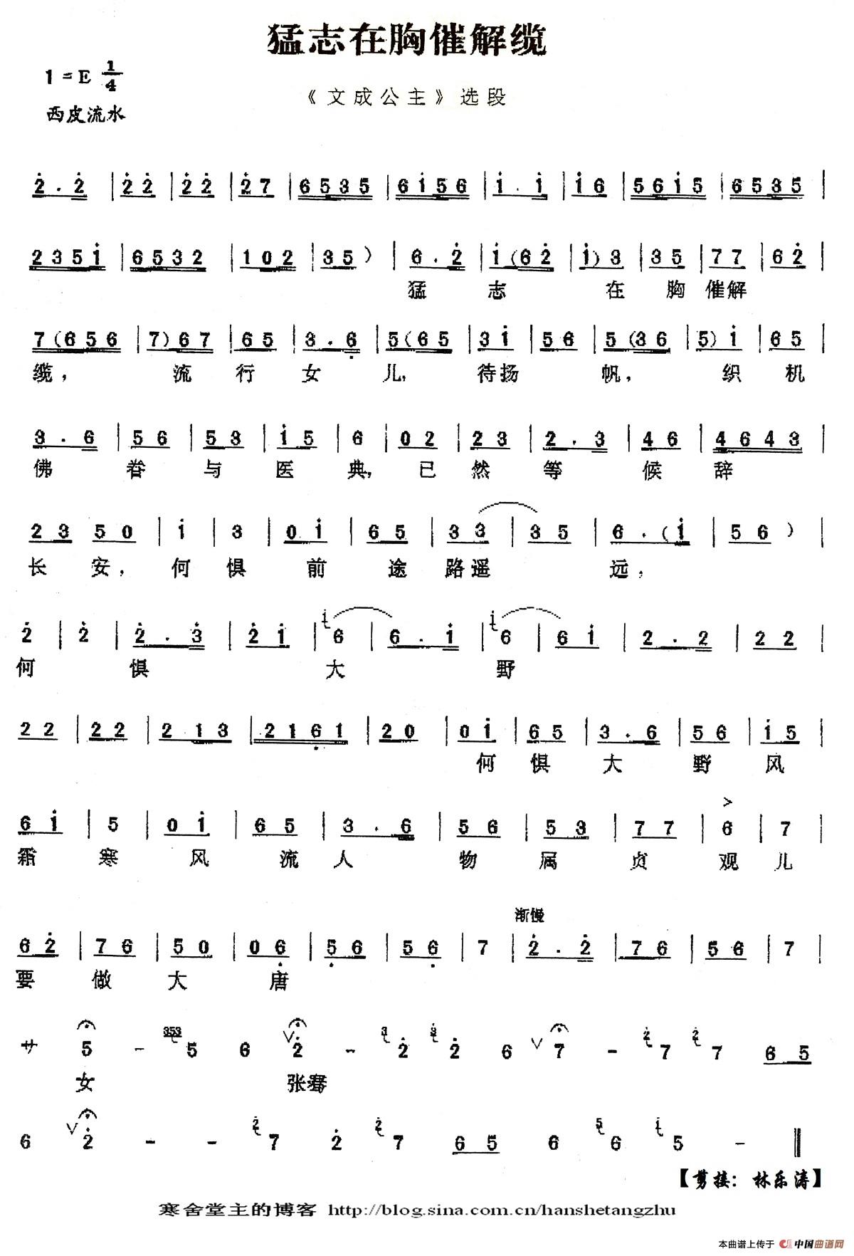猛志在胸催解缆(《文成公主》选段、琴谱)