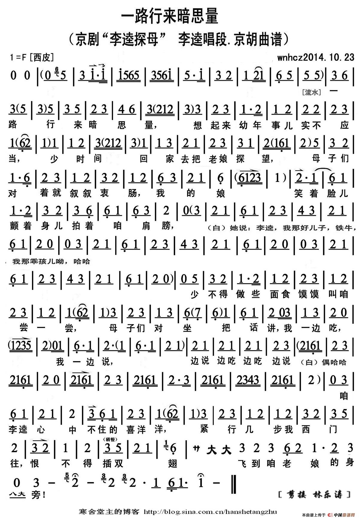 一路行来暗思量(《李逵探母》李逵唱段、京胡谱)
