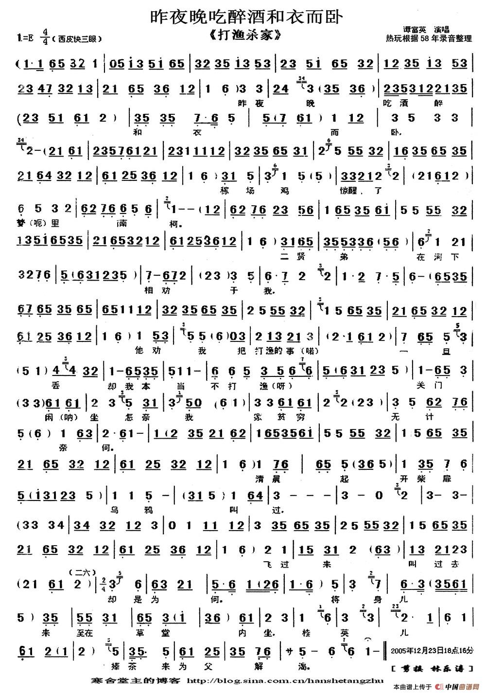 昨夜晚吃醉酒和衣而卧(《打渔杀家》选段、琴谱、热玩制谱版)