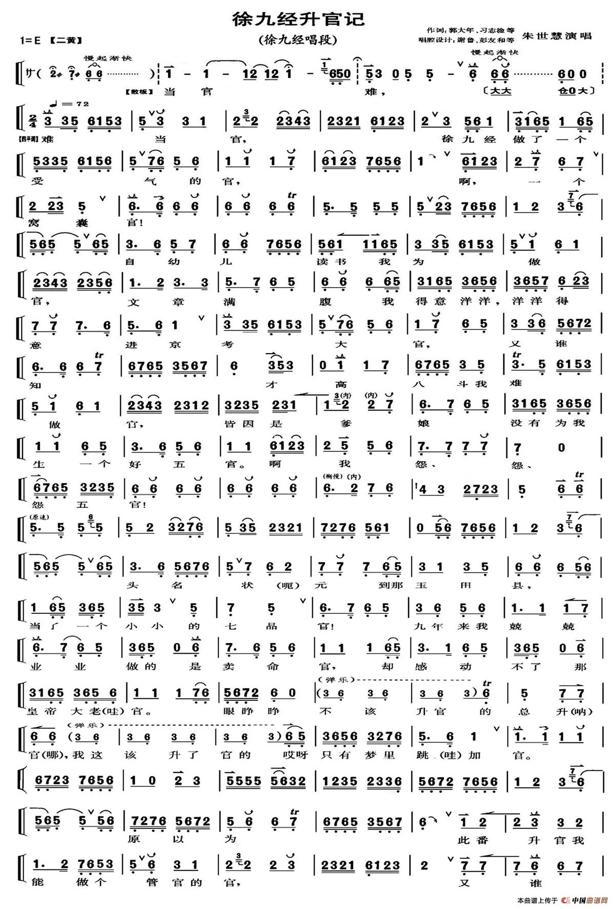 当官难,难当官(《徐九经升官记》徐九经唱段、琴谱)相关五线谱